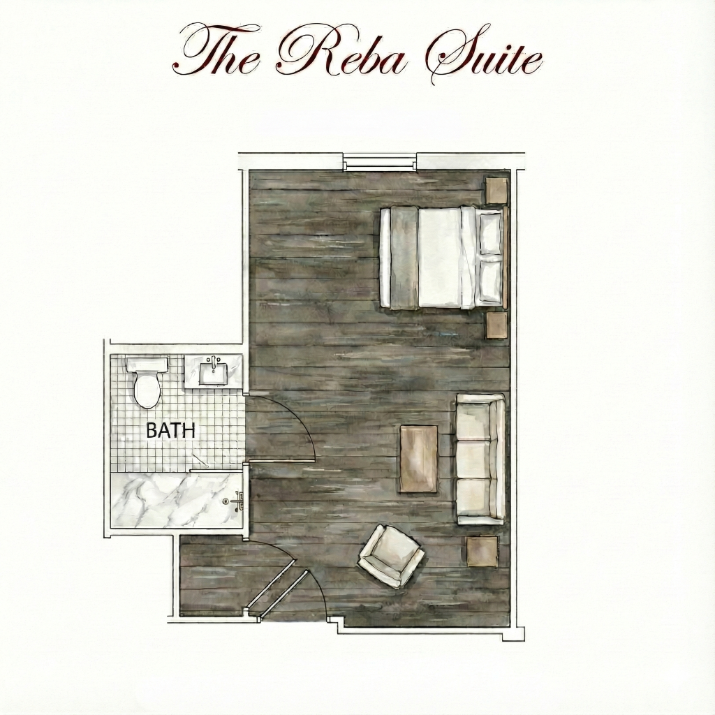 The Reba Suite masterfully blends open-concept efficiency with accessible design to create a space that is as safe as it is stylish. The 315 sq. ft. studio layout minimizes clutter and maximizes ease of movement, offering a cozy lounge area for relaxation that flows effortlessly into a tranquil sleeping space and a private, easy-access bathroom.